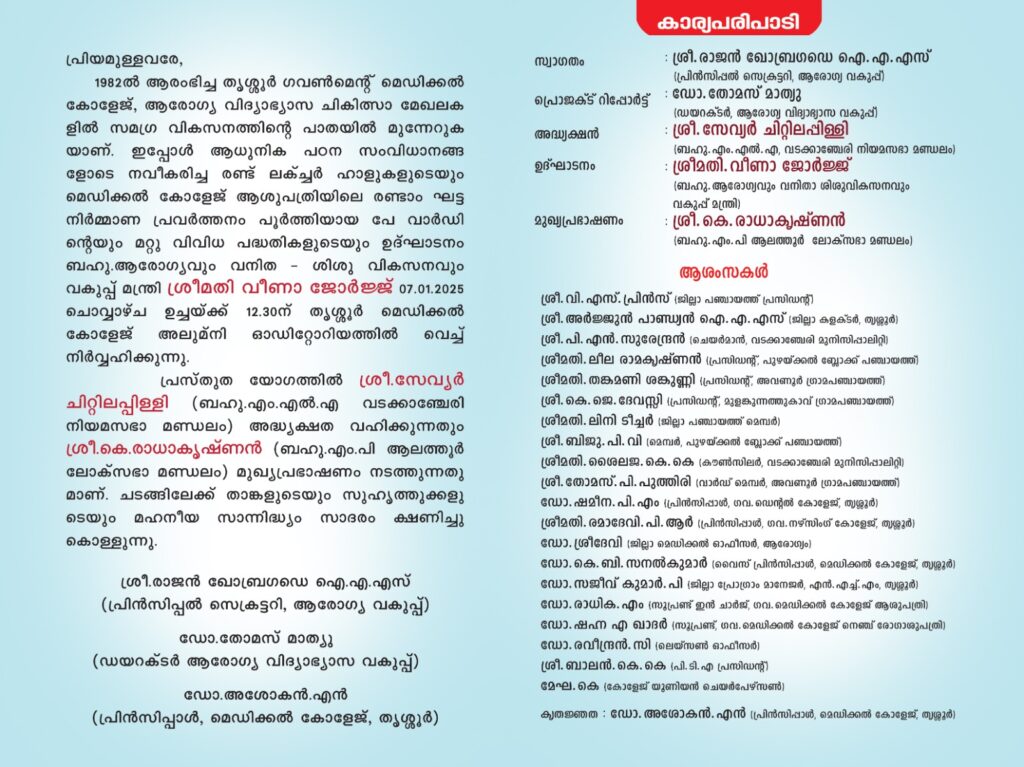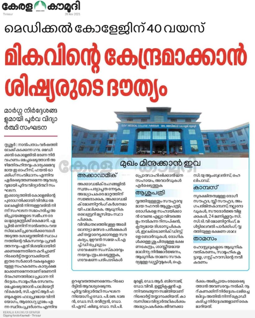- Now we are Renovated old lecture halls near ICH to convert it a big examination hall which can accommodate 250 students at a time with all specifications of KUHS and the estimate comes about Rs.3000000/-
