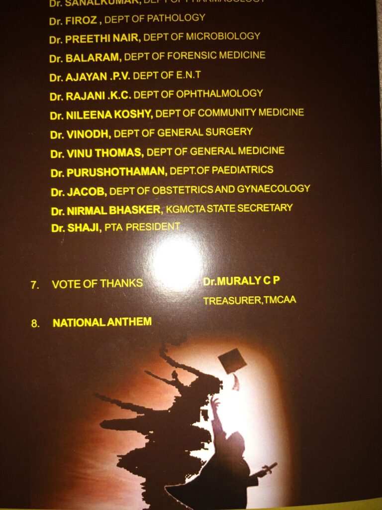 - Constructed Fully Centralised A/C Auditorium which can accommodate 1500 delegates at a time in 2009 and install incinerator for waste disposal -Total cost Rs 17000000/-. Its handed over to GMC, TSR after signing MoU with Government It is maintained by TMCAA with security staff and Cleaning staff and the total maintenance cost /year comes 2000000/-